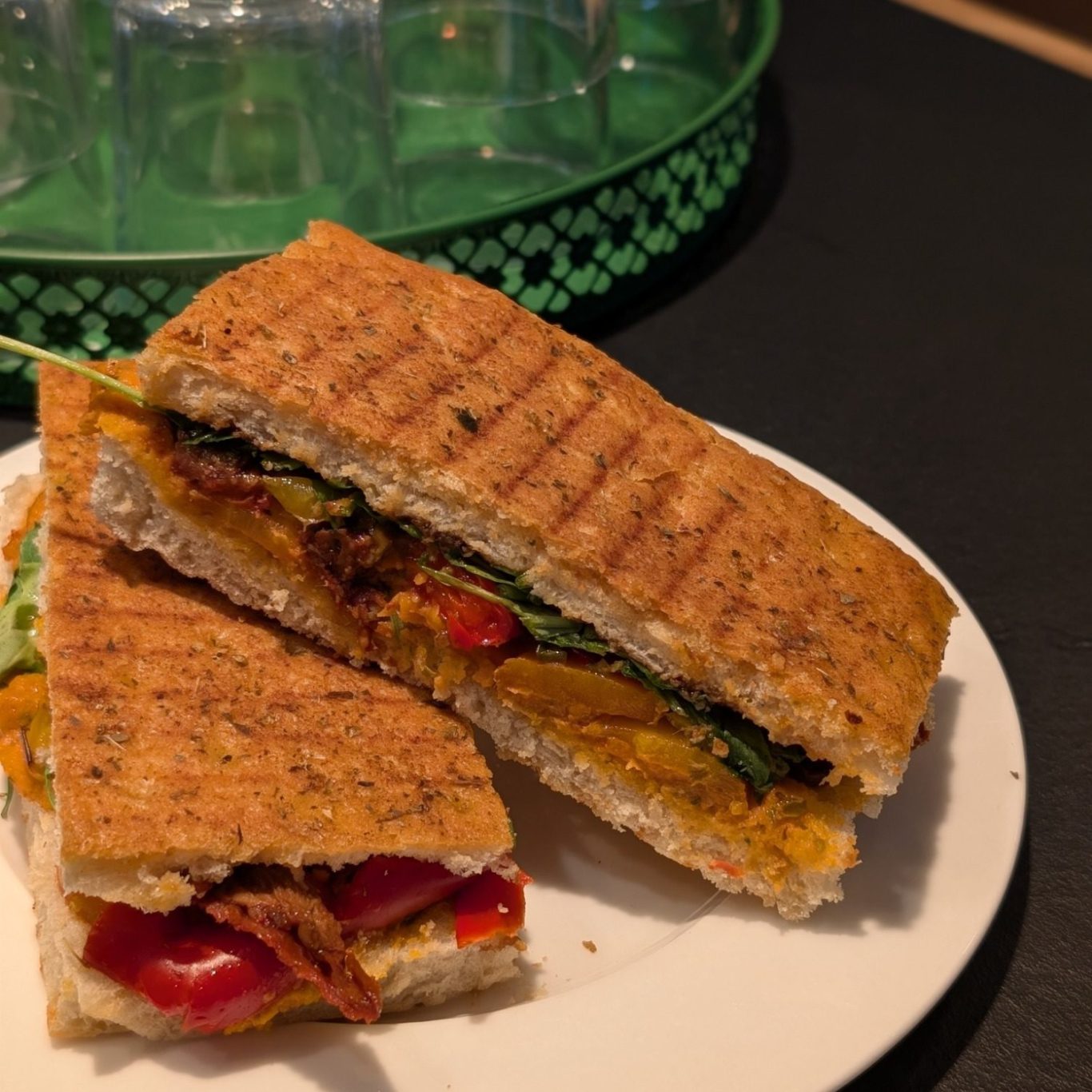 ...mit Rucola und hausgemachtem Pesto - heiß gegrillt